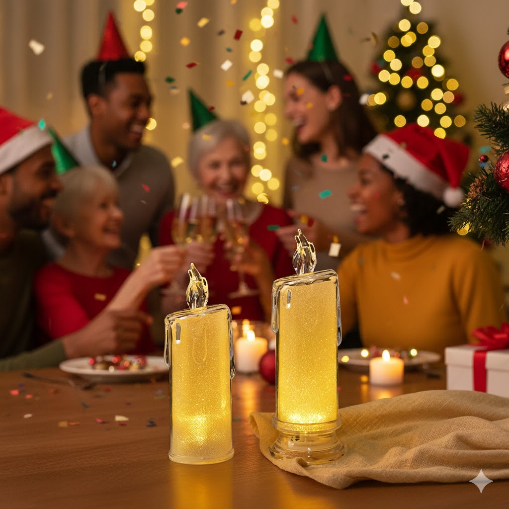 • شموع جليتر ليد زجاجية… جو رأس السنة في ثواني